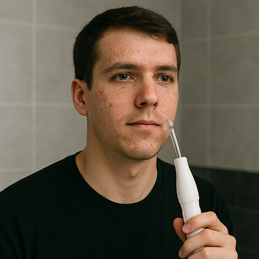 "Feels like something out of a clinic. This thing feels premium, like a tool you'd see in a facial spa. The zaps are weird at first but it works. Acne heals faster, and my skin tone looks more even. Plus, looks clean sitting in my bathroom setup."